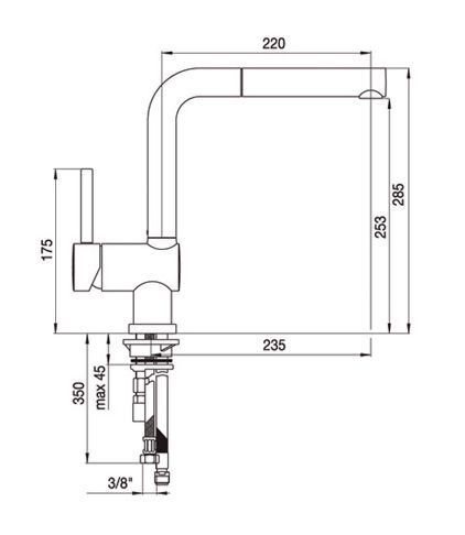 Длина излива: 220 мм