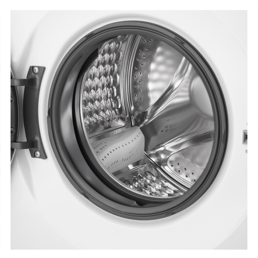 Модель выполнена в классическом белом цвете и оснащена множеством полезных функций, включая 12 различных режимов стирки, в том числе программы с паром.