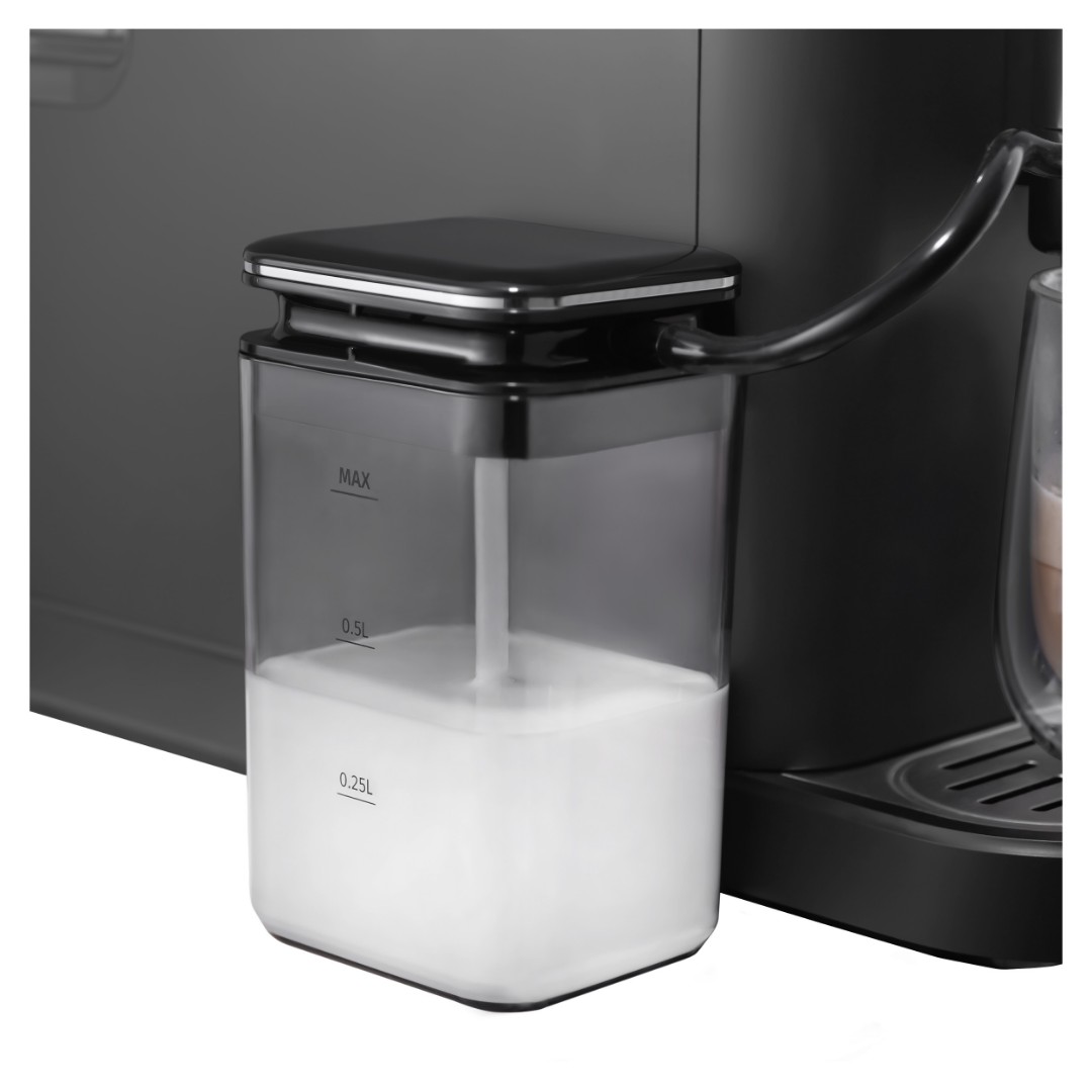 Кофемашина Korting KACM 2003 Andante выполнена в серебристом цвете и предназначена для приготовления напитков как с использованием молотого, так и зернового кофе. Оснащенная итальянской помпой с давлением 20 бар, она обеспечивает идеальное извлечение ароматов и вкусов. Модель предлагает индивидуальную настройку с восемью автопрограммами и возможностью ручной настройки, что дает возможность пользователю создавать и сохранять собственные рецепты. Сенсорный экран с видеосопровождением упрощает выбор и управление прибором. Кофемашина предлагает 15 видов помола, а встроенный капучинатор позволяет готовить восхитительные кофейные напитки с молоком всего одним касанием. Резервуар для молока объемом 750 мл, входящий в комплект, обеспечивает дополнительное удобство — его можно размещать в холодильнике для хранения и охлаждения напитка.