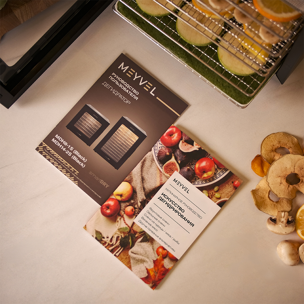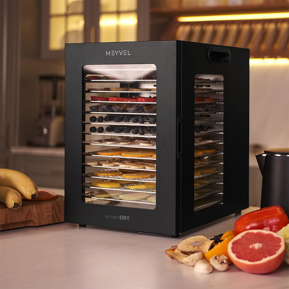 Meyvel MDH14-2S (Black) — это современный дегидратор, который создан для тех, кто хочет заготавливать фрукты, овощи, мясо, травы и ягоды без потери их вкуса и пользы круглый год. Прочный корпус, продуманная конструкция и умная электроника превращают его в надёжного помощника на каждый сезон.