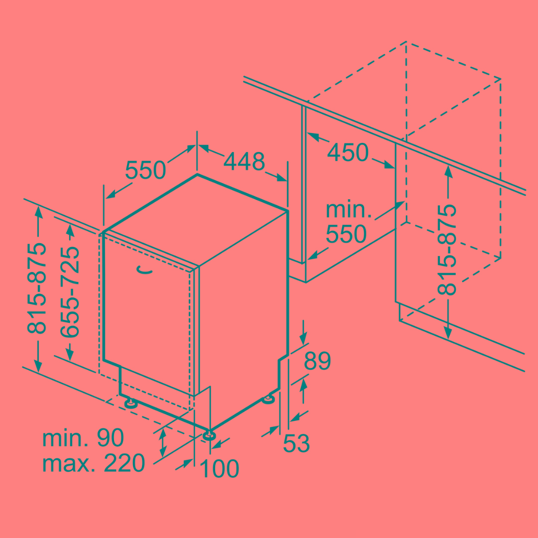 Посудомоечная машина Bosch SPV4EMX10E — узкая модель, которая рассчитана на единовременную обработку до десяти комплектов посуды. Прибор встраивается в нишу размером 81,5-87,5х45х55 см. Регулируемые задние ножки помогут нивелировать неровности пола.