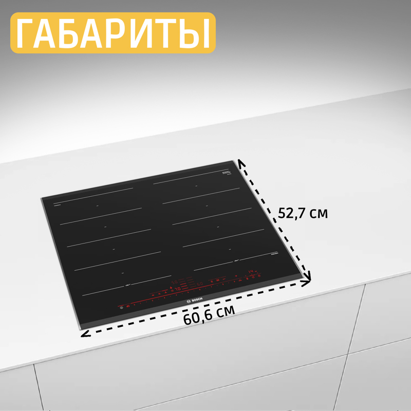 Индукционная варочная панель Bosch PXX675DV1E Serie 8 - это высокотехнологичное устройство для приготовления пищи с четырьмя конфорками. Особенностью данной модели являются две зоны расширения FlexInduction, которые позволяют использовать посуду любого размера и формы.