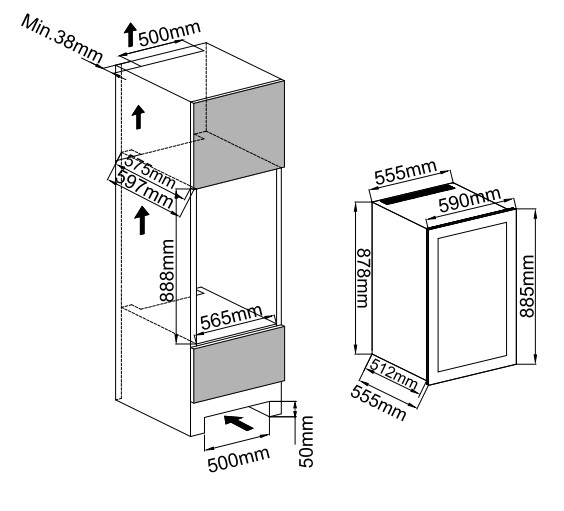 - Реверсивная дверь, которая позволяет устанавливать два винных шкафа рядом;